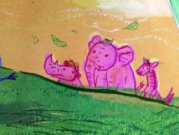 그림이 참 재미있다. 아이는 자연물로 만든 사자의 왕관에 관심을 보였고, 신하들은 왜 나무토막이랑 나뭇잎을 머리에 올려두었느냐고 물었다. 잠시 생각해보니, 벼슬아치들의 오사모인가 싶었다. 작가님의 센스와 그걸 놓치지 않는 아이!