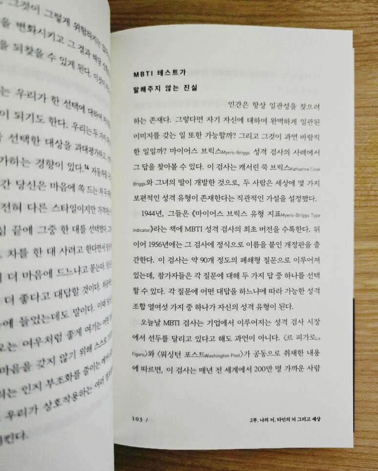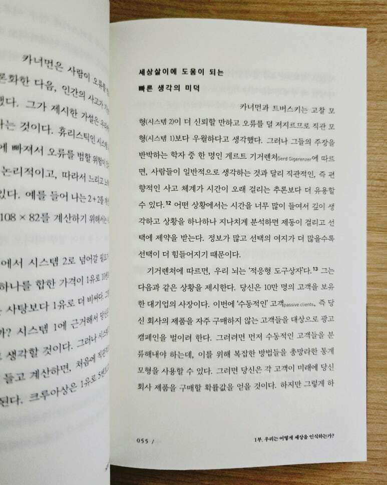저자가 강조하는 개념 가운데 특히 마음에 남은 것은 메타인지였습니다. 뇌의 자동적 작동을 완전히 멈출 수는 없지만, 그 자동적 사고에 무조건 끌려다니지 않을 수 있는 힘이 바로 “내가 지금 어떻게 생각하고 있는지”를 자각하는 능력이라는 점이 인상적이었습니다. “정말 그럴까?”, “내가 지금 보고 싶은 것만 보고 있는 것은 아닐까?”와 같은 질문을 스스로에게 던지는 단순한 행위가, 생각보다 강력한 탈출구가 될 수 있다는 설명은 일상에 바로 적용 가능한 실천법처럼 느껴졌습니다. 이 책을 읽은 후에는 순간적으로 감정이 격해지거나 확신이 치솟을 때, 예전보다 한 박자 늦춰서 스스로의 판단 과정을 바라보려는 노력이 조금씩 생기기 시작했습니다.
