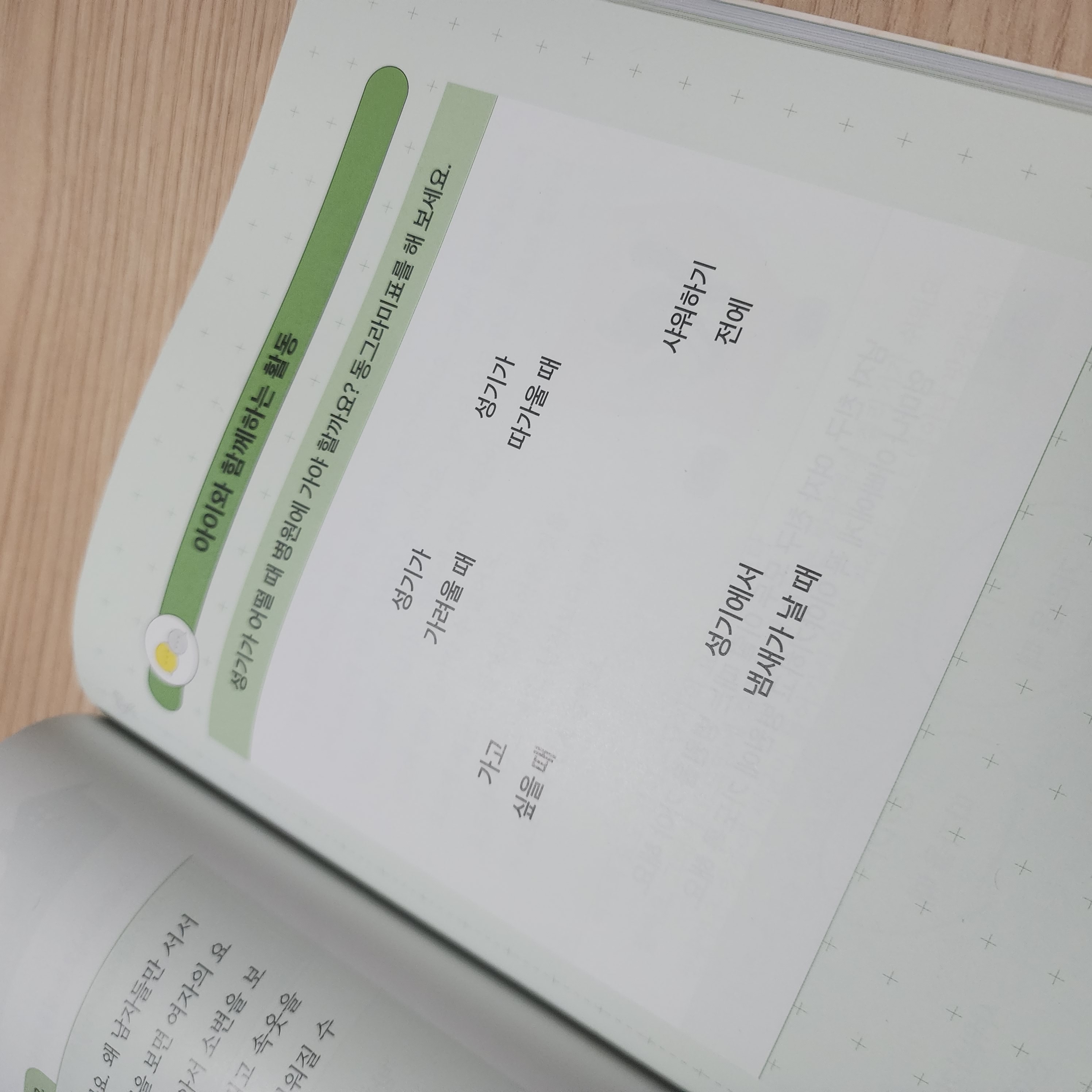 다른책들을 보다보면 아이의 시기에 맞지않은 이야기가 아닌지 고민이 되는 내용도 많은데 아이의 연령에 맞게 그 눈높이에 맞춘 내용을 설명해 주고 있어서 기준을 잡기에 너무 좋았습니다.