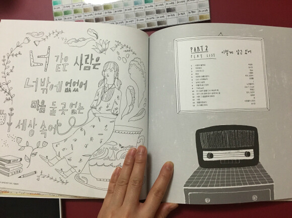 평소 여러 컬러링북을 소장하고 있는데 이렇게 속지가 예쁜 컬러링북은 또 첨인듯하여 올려봅니다.