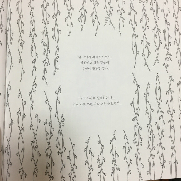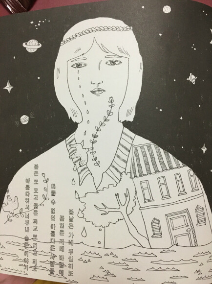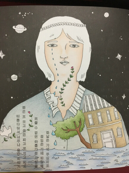까지 속지 보여드렸구요 ~ 컬리링 중간에 메모를 기재할 수 있는 빈 공간이 있어 컬러링 하시면서 본인의 마음을 써 내려가는것도 이별을 노래하는 컬러링북을 백배더 즐길 수있는 방법인듯합니다ㅎ
