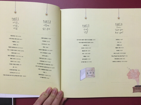 목차에 보시면 4가지 주제를 가지고 거기의 맞는 노래제목들이 나와있어요