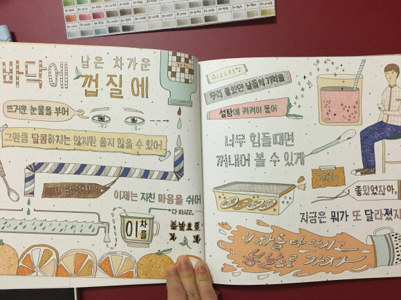 이런 식으로요 ㅎㅎ 제가 보여드린건 이 두페이지지만 4장이 이런 그림이에요 ㅎ