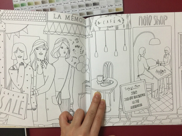 제가 채색해본 페이지에요~ "신발 사세요"라는 글귀가 적혀 있어요 ㅎㅎ