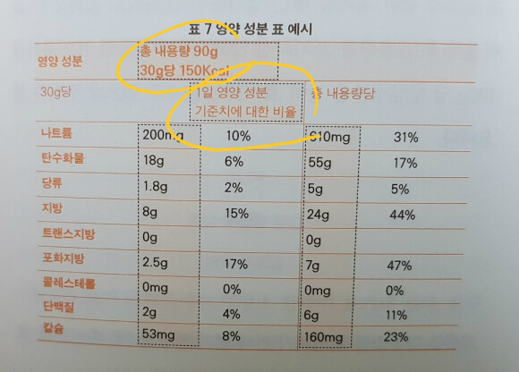 영양성분표에 대한 내용 또한 표에 나와있는 % 보다 더 많이 섭취하게 된다면 우리 몸에 더 많은 게 담길 것이다