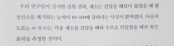 이 활성산소로부터 지켜내는 것이 항산화이고 항산화를 키우기 위해서는 야채 안에 피토케미컬을 섭취하는 것이다