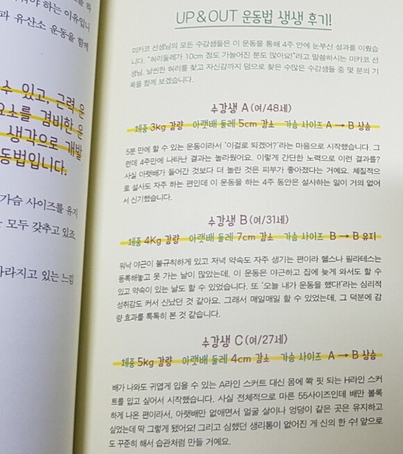 미카코는 골반을 교정하고 뱃살도 빠질 수 있는 방법을 연구했고 유산소 운동과 근력운동의 장점만을 합친 운동법을 개발했다고 한다