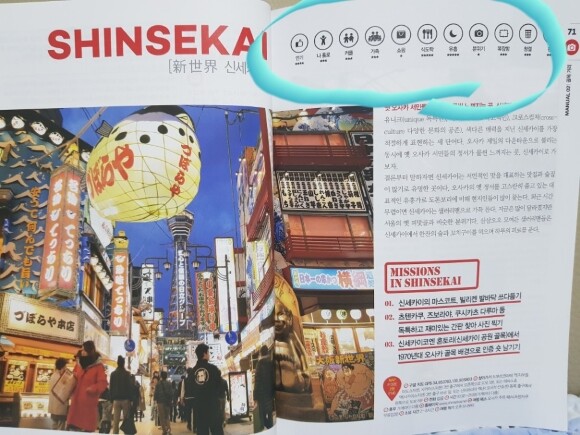 책의 페이지 상단에 귀여운아이콘 모양의 그림과 분류별로 평가에 대한 별점이 나타나있어 여행지를 더욱 쉽게 파악할 수 있었다