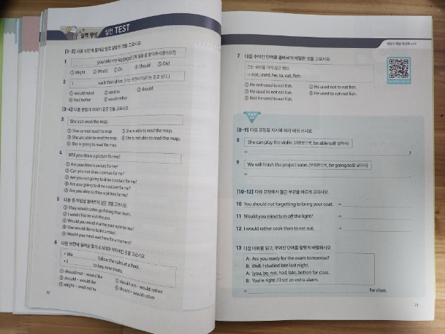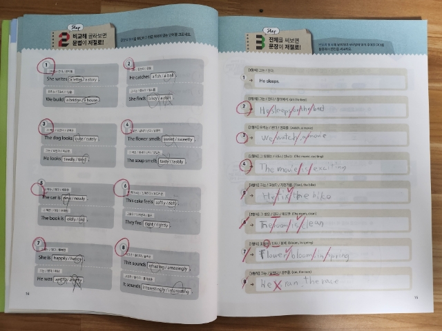 문제에서는 그림을 이용해서 보고 문장을 쓰게 만든다든지, 괄호안을 넣는데