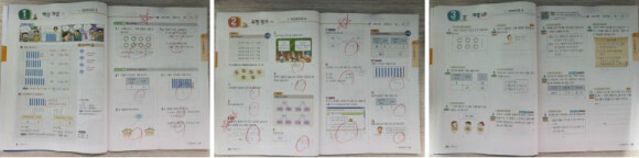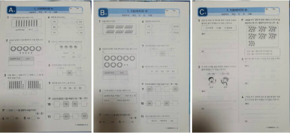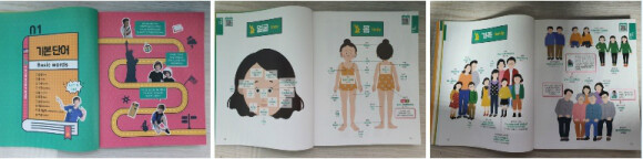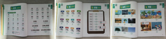 얼굴 가족 그리고 기본적인 숫자 월 요일 날씨 계절 이렇게 나눠있는구성과 색으로 구분지어놓은것이