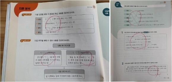 지문을 읽고 독해 하고 분석하고 어휘학습까지 하도록