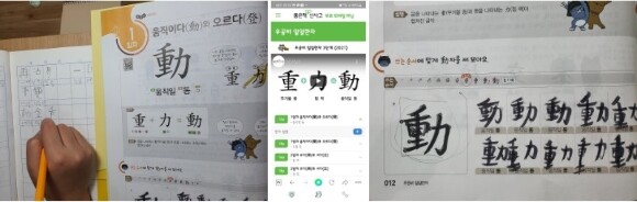 위에 작은 한자가 순서대로 씌여있어서 획순이 보이기도하고