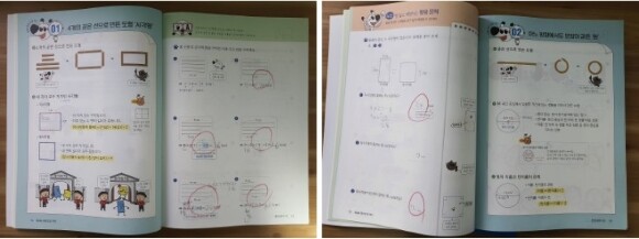 각도 도형에 관련 문제집을 다양하게 접하기도 했어요.