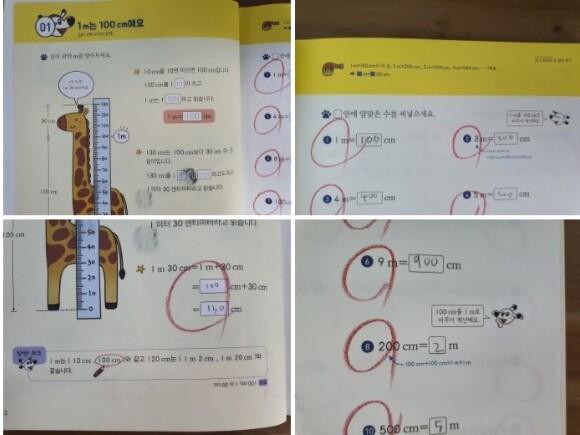 1m = 100cm 라고 한번더 씌여있고 이걸 응용해서