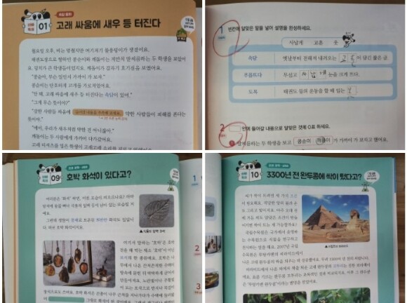 구성별로 보면 속담동화 - 교과과학 생활문 - 교과사회구성으로 되어있고