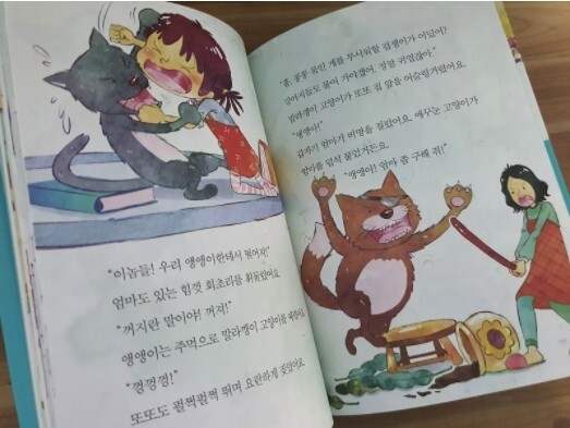 "엄마 미워! 고양이한테 엄마 물어 가라고 할 거야!"