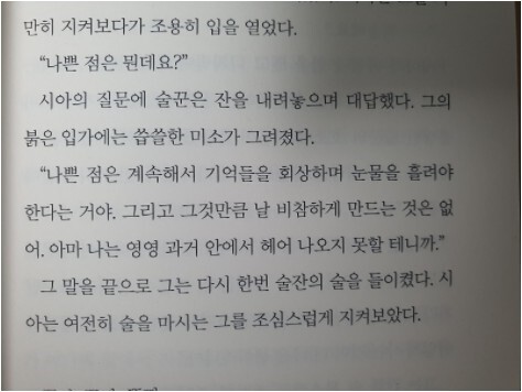 “……그러니까 당신은, 당신의 과거 때문에 울고, 또 그 과거를 생각해 보며 위로를 받는다는 거네요.”