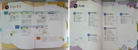 얼굴 가족 그리고 기본적인 숫자 월 요일 날씨 계절 이렇게 나눠있는구성과 색으로 구분지어놓은것이