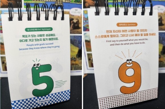 일력이니 매일 한개의 명언이 한글과 영어로 적혀있어요.