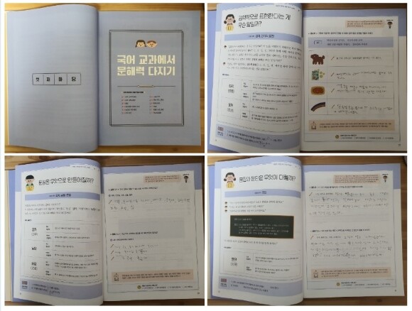 어휘를 다루면서 설명이 되어있고 그 어휘로 짧은 글짓기를 하고