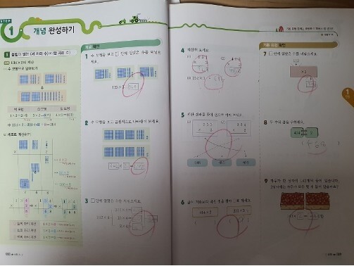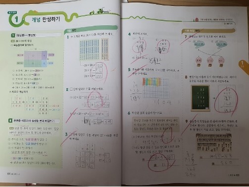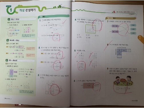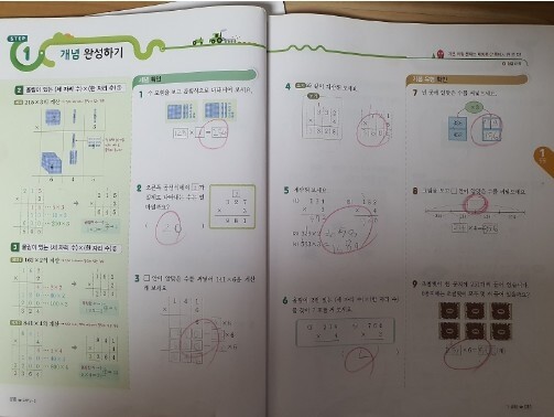 곱셈 기본에선 곧잘 하더니 실력오니까 틀리는 것이 많이보여요.