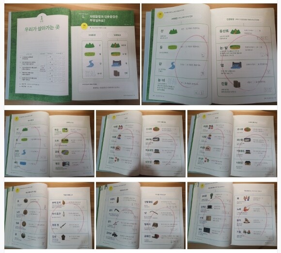 자연환경과 인문환경에 대한 어휘를 정확하게 그림과 뜻을 써놓아서
