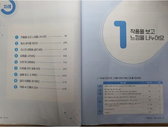 차례는 교과서에 담긴대로 있고