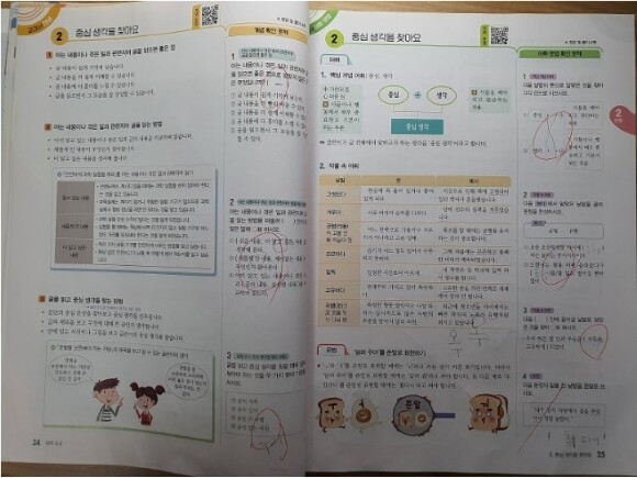 중심생각을 찾아요~ 2단원의 내용은 중심생각 찾는 부분이라