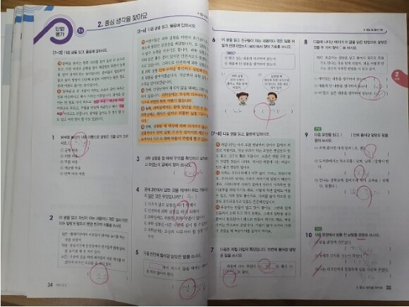 2단원도 무사히 마무리하면서 중심문장을 줄쳐가며