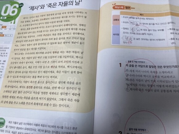 아이와 《냥냥이랑 어휘로 쓱: 과학 4-1》교재를 받자 마자 풀어 보았어요
