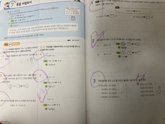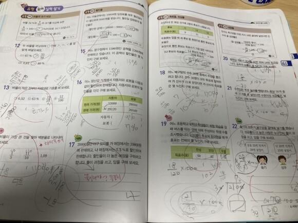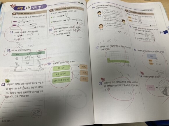비교적 잘 풀고 있어요. 하지만 소소의 나눗셈과 비와 비율 부분을