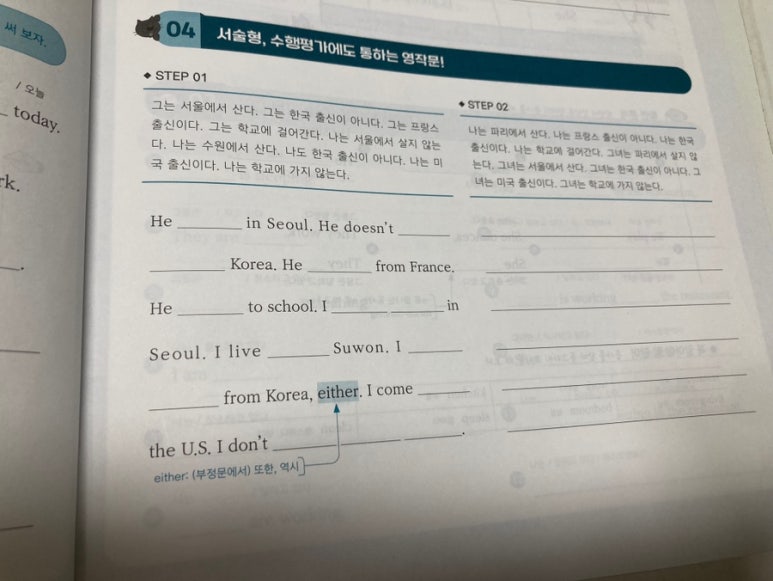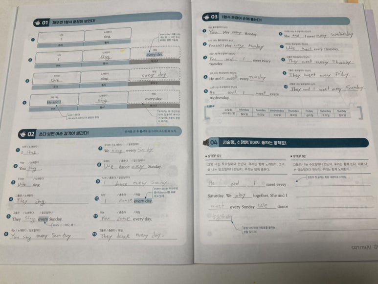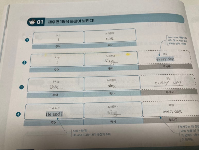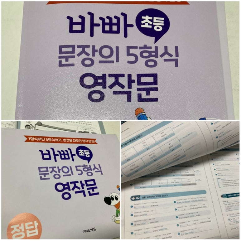 오늘은 아이와 함께 바빠 문장의 5형식 영작문을 풀어보았어요초등 5학년인 딸과 함께 공부해 본 교재인데요학원을 다니지 않는 딸은 늘 영작을 어려워했었어요쉽게 배울 수 있는 교재가 없을까 했는데 바빠 초등 문장의 5형식 영작문은 저희 아이에게 꼭 맞는 교재였어요1형식부터 5형식까지 차근차근 공부하고한 달 안쪽이면 한 권의 영작문 교재를 다 끝낼 수 있겠네요영어의 기본 틀을 익히고 영어 감각을 익혀요!1형식부터 5형식까지 두루 배워볼 수 있는 장점이 있어요사실 영작문을 할 때 무엇을 쓸지가 가장 어려운 부분인데요바빠 문장의 5형식 영작문 교재는 그런 어려움을 수월하게 만들어주는 교재랍니다사실 아이에게 ”풀어보렴“하고 주었던 교재인데요아이가 알아서 개념을 읽고 스스로 적는 모습에서 새삼 놀랐습니다엄마의 도움 없이도 아이가 스스로 할 수 있다는 것은 교재가 정말로 쉽고 아이의 눈높이에 맞춰서 만들었다는 의미지요1형식 만드는 방법부터 차근히 공부했어요어순이 사실 우리나라 말과 다른게 영어지요아이가 이 부분을 왜?라고 물으면서 가장 궁금해했어요그들이 쓰는 언어인지라 왜? 보다는 어순을 공부시키는 게좋기 때문이지요무엇보다 개념 설명이 아주 눈에 뜨게 쉽게 되어있어요영작이 마냥 어려운 게 아니라 이렇게 어순에 따라 쓰다 보면저절로 되는 걸 알게 되실 거예요두려움을 없애기에 딱 좋아요!주어 동사 목적어 보어 등 어려운 용어들도 쉽게 배워요사실 이런 용어들이 뜻이 어렵지 문장을 자세히 들여다보면주어의 역할. 동사의 역할목적어. 보어 등등의 용어들을영어문장을 통해 익히고 배우니~아~그랬구나 하며 자연스럽게 알게 되는 효과가 있어요!!그리고 품사 공부는 영어 공부에 있어서 핵심이기때문에 중학교 가기 전에 이렇게 접하고 가게 되면중 고등가서도 이해하기가 더욱 쉽겠죠?”나는 노래한다 매일“ 같은 구문도이제 아이가 I sing everyday처럼 쉽게 영작할 수 있게 되었어요영어의 어순을 먼저 정확하게 배우고거기에 맞춰 영작 해나가는 장점이 있어요!저희아이는 늘 영어어순이랑한글어순이 다른게 가장 헤깔리다고 했는데요이제 주어 다음에 동사동사다음에 목적격 이렇게 나오는걸완전히 이해하게 되었어요!!!꼭 알아야 할 단어들도 깨알같이 알려주고 있지요초등학교때 알아야할 수준의 꼭 맞는 단어들로 배열해서 문장을 만들다 보면 아주 쉽게 아이가 영작할 수 있어요!그리고 반복적으로 문장을 적어보면서 어순을 익히고또 자연스럽게 외우게 되어서 서술형이나 수행평가에도 큰 도움이 됩니다사실 아들이 서술형에서 영어를 많이 틀려왔을 때 여간 속상한 게 아니었죠..이렇게 미리 영작을 배워두면 중학교 서술형, 수행평가에도 수월하게 할 수 있어요!기초영작과 더불어 영어회화까지도 잘할수 있는 효과도 있답니다영어의 감각을 익히고 꾸준히 매일매일 주어진 양을 풀다 보면아이가 영작도 회화도 자신감을 가질 수 있는 거지요~그리고 문법적인 감각도 익힙니다I sing을 익혔다면 He sings 와 같이 3인칭 단수의 주어는 동사 뒤에 S가자연스럽게 붙는 걸 익힙니다반복연습하다 보면 문법적인 요소도 자연스럽게 습득이 되어요분량도 많지 않고 하루할 수 있는 양만 차근차근 공부하다 보면문장 쓰는 게 쉬워집니다“영어는 바로 반복의 힘이지요!”바빠 초등문장의 형식 영작문 교재로연습을 매일 하다 보면 영어가 만만하게 되고그렇게 만만하다 생각어지면 공부하게되고그러면서 실력이 오르기 마련이지요반복학습으로 초등영작을 쉽게 익혀요!1형식부터 5형식까지 빈칸을 채우면서 영어를 써보기 시작하고나중엔 긴 문장도 두려움 없이술술술 쓸 수 있어요초등영어의 기본을 다지고 문법부터,서술형 그리고 회화까지폭넓게 공부할 수 있는 바빠 초등 문장의 5형식영작문 추천합니다“출판사로부터 도서 협찬을 받고 본인의 주관적 견해에 의해 작성하였슴"