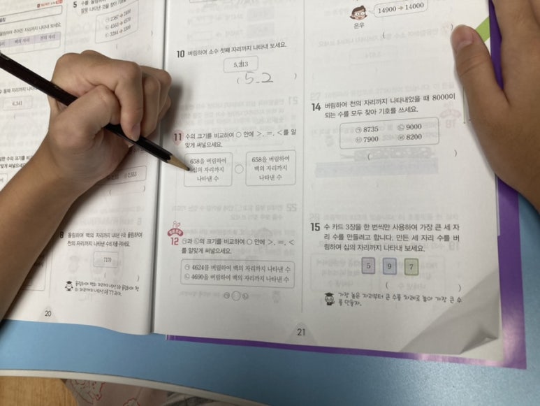 오늘은 아이와 함께 수학리더를 풀어보았어요이제 2학기가 시작되었지요2학기 예습에도 좋고 복습에도 좋은 수학리더 기본+응용 5-2를 소개합니다한 권으로 기본부터 응용까지 꼭 잡는 문제집이 필요했었는데요이미 기본을 한 권 정도 풀은 딸이라 이제 마침응용문제집이 필요했던 찬라에 풀어본 문제집 입니다이 교재라는 기본 개념도 충실히 담고 있어서 처음 예습용으로도 아주 괜찮았어요진도를 차례를 보시면수의 범위와 어림하기부터 평균과 가능성까지 두루 담고 있어요특히나 5학년 수학은 어렵고 중학교랑 연관이 많이 되므로 충실히 공부해 둬야 합니다우선 개념 익히기부터 공부하고 풀어요개념을 배우기 아주 쉬운 설명과 함께시각적으로 구성되어 있어서 아이가 이해하기 쉽다고 합니다! 이렇게 스스로 자기주도하에공부할수 있는교재가 수학리더 기본+응용 5-2에요!!개념을 확실히 다지고응용및 창의문제까지 다양하게 풀어볼수 있어요!