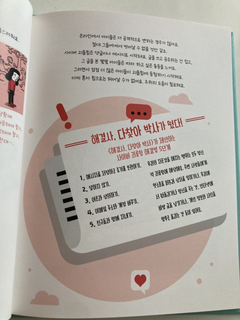또한 사이버 괴롭힘을 당할 때의 해결책을 척척 알려줘서 큰 도움이 되었어요