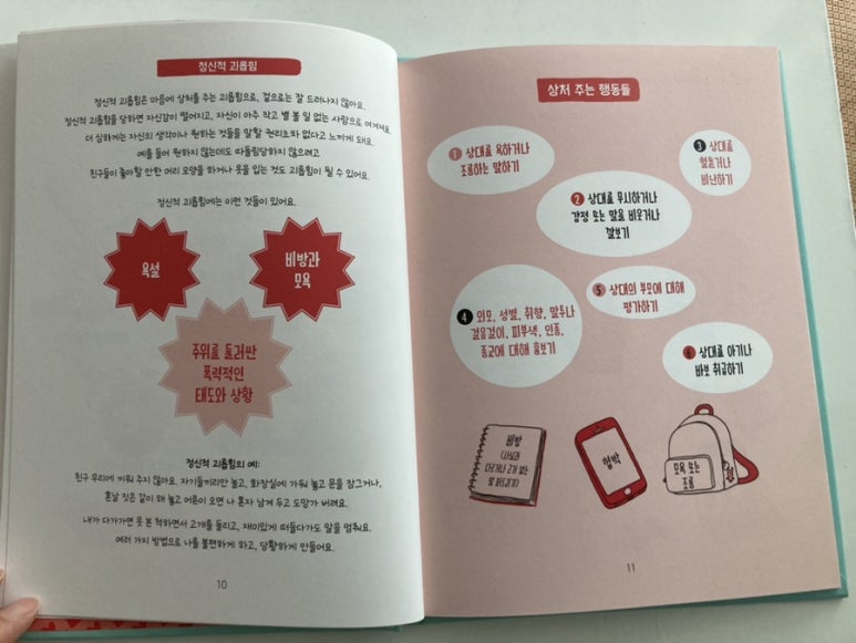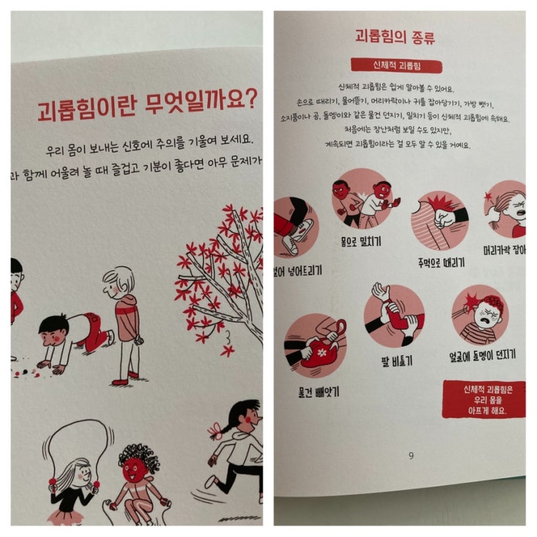 괴롭힘이 무엇인지에 대해서 쉽지만 자세히 설명해 주고 있어요