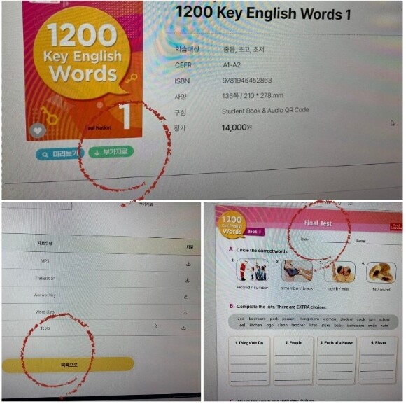 총 3권을 다 풀면 1200개의 단어를 외운다니 공부를 안 하면 안 되겠네요!!