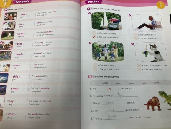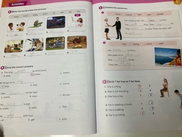 그림과 연결해 보기, 단어 적어보기, True or False 체크하기 등