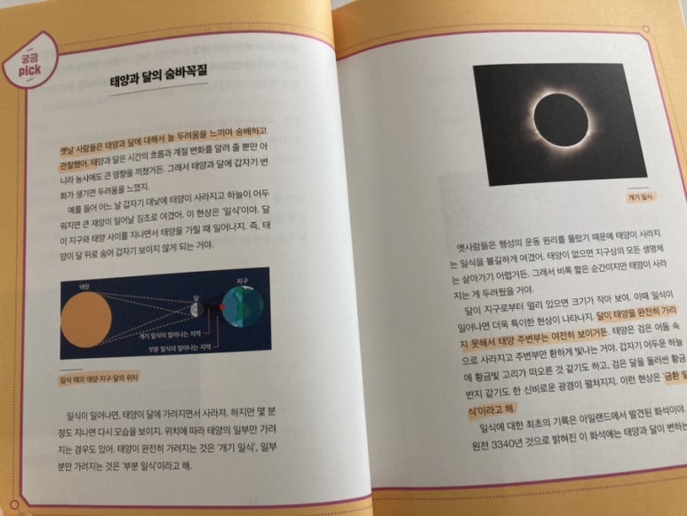 일식 때의 태양과 지구 달의 위치를 그림으로 알게 되니 이해하기가 쉬웠어요