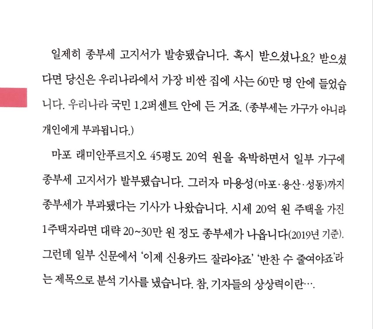 ③ 미국은 주마다 1~2퍼센트가량 되는 재산세에, 로컬 정부의재산세가 더해지고, 여기에 멜로루스 세금 Mello-ros tax 이 추가된다. 주변에 도로나 교량, 학교를 지을 경우 그 혜택을 집주인이가져간다는 이유로, 많게는 집값의 1퍼센트까지 부과한다. 이때문에 캘리포니아 시민들은 200만 달러(24억 정도) 주택을 소유하면 연간 5,000~6,000만 원가량 재산세를 낸다. 맨해튼 주택의 상당수 rent-regulated apartments는 월세를 주민위원회에서 정한다.