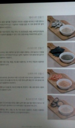 멸치가루, 다시마가루 , 새우가루, 표고버섯가루, 들깨가루 등을 사용하고 있었어요.