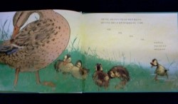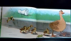 막내오리 조는 언제나 딴청을 피우네요. 돌맹이에도 관심을 갖고, 날아가는 나비에 정신이 팔려 형제 오리들을 따라가질 못해요.