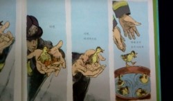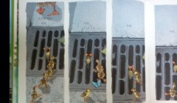 엄마뒤를 따라가는 오리형제들이 하수구에 그만 빠지고 말아요.차례로 주르르륵~~떨어져 나가요.