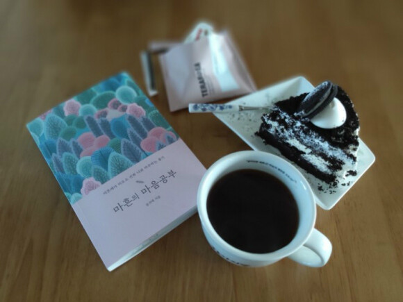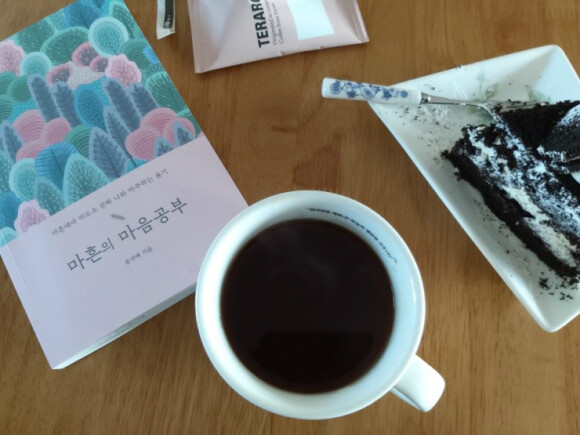 신랑과 아들이 TV를 보는동안 커피한잔과 달콤한 케잌과 내가좋아하는 책한권을 읽었다.