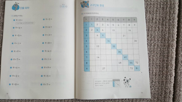 우리어릴때는 이일은이 이이는사 이러면서 외웠잖아요~ ㅋㅋㅋ 아직 구구단을 학교에서 하지않아 외운건 아닌것같고