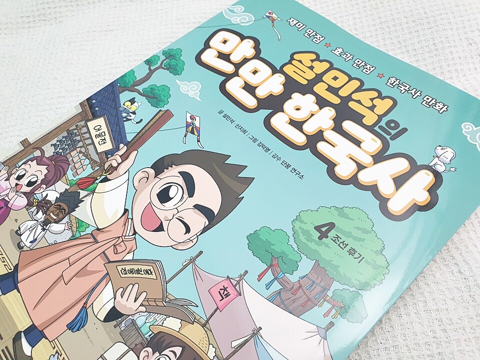 시중에 퍼져있는 한국사만화를 보면 가끔 제가 어릴 적에 읽었었던 한국사만화 중 하나였던 맹꽁이서당이라는 만화가 생각납니다. 아주 오래 전에 그려진 만화로 주로 조선시대를 배경으로 그려진 재미있는 내용이었는데요. ​ 모처럼 미래엔에서 나온 설민석의 만만 한국사 네번째 책을 만나게 되니 어릴 적에 즐겨있었던 한국사만화가 떠오르게 됩니다. ​ ​ ​ ​ 제가 어릴 적에 읽었던 한국사에 관한 만화가 주로 조선 전기와 중기를 배경으로 만화적인 이야기가 주를 이루었다면 이번에 읽은 미래엔에서 출간되어진 설민석의 만만 한국사의 경우에는 아무래도 조금 더 참고서나 학습서같은 느낌으로 만날 수 있는 책이 아닌가 싶기도 합니다. ​ ​ ​ ​ 대체로 한국사를 배경으로 출간되어지는 학습만화의 경우에는 만화적인 그림이 주를 이룬다고 한다면 미래엔 설민석의 만만 한국사는 생각보다는 한국사능력검정시험에 적합한 내용과 구성이 주를 이루고 있다는 느낌입니다. 만화와 문제가 함께 들어가 있거든요. ​ ​ ​ ​ 시작은 흥미롭게도 4권을 시작하기 이전의 3권 까지의 내용을 복습하는 시간입니다. 지금까지 어떤 내용을 공부(?)했었는지 쫙~! 한번 정리해주는 시간을 가지게 되는 것이죠. ​ 그동안 무엇을 읽었는지 기억이 가물가물한~ 학생들에게 이렇게 한번씩 복습하는 시간을 가지면서 시작하는 구성이 좋습니다. ​ ​ ​ ​ 설민석한국사의 구성은 만화와 함께 뒤에 바로 이어지는 정리와 문제 시간으로 아이들은 한국사를 보고 읽은 다음에 곧바로 한국사능력검정시험과 유사한 문제들을 접할 수 있는 기회를 만날 수 있게 되지요. 그냥 한국사 만화를 읽는다는 느낌봅다는 한국사교재를 읽는 느낌이 더 큰 것 같아요. ​ ​ ​ ​ 내용도 지나치게 재미만 추구하지않고 역사에 집중하여 진행이 되고있기때문에 학습적인 부분이 강조되어져있어서 엄마의 눈으로 바라볼 적에는 상당히 바람직한 교재의 특징을 가지고 있다는 생각이 들기도해요. 중학생인 누나도 참고로 읽기 좋은 책이 아닌가 하는 생각이 들어서 얼른 다음 편이 하루라도 빨리 출간되면 좋을 것 같습니다. ​ ​ ​ ​ 아이들이 한국사를 어려워하는 이유 중 하나는 한국사 전체의 역사적인 흐름을 읽지 못하고 하나의 사건이나 사물, 혹은 역사적인 배경에 숨겨진 다양한 시각적인 요소를 파악하지 못하는 것이 크다면 클 수 있겠는데요. 그러한 다각적인 시선을 이 책을 통해 빠르게 잡아낼 수 있을 것 같기도 합니다. ​ ​ ​ ​ 역사를 공부하다보면 그런 것이 어렵다고 해요. '어느 왕이 무엇을 만들었다'만 외웠더니 '어느 왕이 무엇을 왜 만들었나'에 관한 문제가 나와서 당황했다는 경우를 접하곤 하는데요. 하나의 사건에는 그 사건에 대한 배경이 반드시 존재하기 마련인데 그러한 배경적인 부분까지 세세하게 소개하고 이해시키는 것이 사실상 어려운 일이 아닐 수 없습니다. (알아서 척척! 알 수 있다면 베스트이겠지요..ㅠㅠ) ​ ​ ​ ​ 한국사만화로서는 조금은 폭넓은 시선으로 설민석한국사가 그러한 다각적인 이해를 아이들에게 제공해줄 수 있지않을까 싶습니다. 일단 역사를 가벼운 마음으로 읽고난 다음에 진지하게 정리되어진 내용을 읽고나서 다시 한번 더 진지하게 문제까지 풀 수 있으니 아이들에게는 더 좋은 교재가 있을까 싶어요. ​ ​ ​ ​ 가볍지만 가볍지않은 한국사만화 하지만 한국사능력검정시험까지 대비가 가능한 교재의 특징을 가진 한국사책 설민석의 만만 한국사는 그런 책인 것 같아요. 아이들이 한국사를 보다 쉽고 재미있게 배울 수 있는 책을 찾던 저희 아이들에게 바람직한 책이 아닌가 싶습니다!