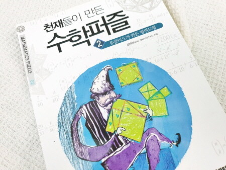 천재들이 만든 수학퍼즐은 초등수학 책이라딱! 정의하기에는 사실 조금 어렵습니다.왜냐하면 저도 모르는 수학에 관한 이야기가너무나 많기 때문인데요. 읽다보면 수학 속지식은 물론이고 문해력까지 한층 높여나갈 수있는 재미있는 초등수학전집을 읽습니다.문해력은 한자로 文解力이라고 씁니다.말 그대로 글을 읽고 이해하는 능력을 말하지요.과학적이며 창조적인 한글을 기반으로우리나라 국민 대부분이 글을 읽는데에는거의 문제가 없다고 보아도 과언이 아닐 것입니다.그러나 단순하게 한글을 읽는 것이 아니라그 글이 의미하는 것이 무엇인지를 아는 것은저변에 차지하고 있는 배경지식이 있어야하죠.중학생을 대상으로 하는 문해력 테스트에서27%에 해당하는 학생들이 같은 연령대의어휘 수준에 미달한다는 사실은 걱정스럽습니다.초등수학 책인 천재들이 만든 수학퍼즐을읽기 위해서는 아무래도 배경지식이 어느 정도필요할 수 밖에 없습니다. 쉽게 설명이되어있다고 하더라도 본 지식이 가지고 있는수준이라는 것이 있기 때문인데요.그 수준을 낮추고 낮추고 낮추는데에는한계가 발생할 수 밖에 없는 것이 사실이죠.그래서 솔직하게 말씀드리자며, 이번에 읽은천재들이 만든 수학퍼즐의 2권인'유클리드가 만든 평면도형'은 저희 막내에게당연하지만 어려운 책이었습니다.초반부터 기하학이 나오는데요...^^;;;초등 저학년에서 고학년으로 넘어가는 학생들도간신히 이해할 수 있을까말까한 내용으로시작하기때문에 저희 막내에게는 무리였어요.하지만 새로운 수학 분야가 있다는 사실을아는 것만으로도 저는 수확이라고 여깁니다.왜냐하면 세상은 아는만큼 보이기 때문이죠.자신이 모르는 분야가 또 존재한다는 것을알게 된 이상 저희 막내는 앞으로 그것을 향한궁금증을 풀어나갈 시간을 보낼 것입니다.그런 궁금한 시간들을 풀어나가는 과정이어쩌면 아이의 세계가 더욱 넓어지는 계기가되어주는 것이 아닌가 하고 생각해봅니다.당장은 어려워하는 이 책, 그렇다면 어떻게읽으면 좋을까... 생각을 하며 다시 보았더니'만화'와 중간중간에 들어가있는 일러스트는의외로 재미있고 쉽다는 것을 알게 되었습니다.그래서 당장은 도저히 이해할 수 없는 영역의수학분야이지만 만화만 봐두어도 분명히너에게 도움이 될거라고 말을 했습니다.그리고 그런 쉬운 접근은 바로 '시작'을 의미하겠죠.어려운 책을 펼쳐들 수 있는 용기는 누구에게나마찬가지이겠지만 이런 시작과 처음을어떻게 하는가에 따라 달라지는 것 같습니다.유클리드는 기하학에는 왕도가 없다는 말로유명하다고 합니다. 생각해보면 모든 일에는왕도가 없는 것 같습니다. 지극히 예외적으로천재적인 두뇌를 지닌 사람을 제외하면요.기하학은 점, 직선, 곡선, 면, 부피와 같은공간의 성질을 연구하는 수학분야라고 합니다.중세 서양대학의 7대 학문에 속하며측량과 건축에 이용되며 발전되었다고 하지요.기하학의 기원은 알 수 없으나 해마다 이집트에발생하는 나일강의 범람으로 인한 토지 경계의유실로 사람들이 매번 새로 토지의 넓이를측정하면서 기하학의 지식이 생겼다고 해요.뭐든 필요에 의해 생겨난 것이었었네요.안그렇게 보이지만 역시나 기하학도 사실 우리실생활에 밀접하게 연관되는 학문이었습니다.근대 기하학의 개념은 피타고라스를 비롯한고대 그리스 수학자들에 의해 출발하였으며유클리드라는 수학자가 자신의 저서 '원론'에대부분의 원리를 증명하여 정리하였으며이것을 우리는 유클리드 기하학이라고 합니다.제 개인적인 생각이지만 공간과 입체에관심이 있는 경우에는 무척 재미있는학문이 아닌가 싶기도 합니다만 대체로어렵게 여겨지는 수학의 분야이지요.당장은 어렵지만 '천재들이 만든 수학퍼즐'을통해 기하학의 기초를 맛보기(?)처럼 읽어요.아이의 질문을 받느라 곁에서 함께 읽으며다시 피타고라스의 정리를 떠올리기도 합니다.가물가물하던 기억이 책으로 인해 새삼떠오르게 되어 저 역시 흥미로운 시간입니다.'천재들이 만든 수학퍼즐'어째서 영재원 아이들이 즐겨읽는지 알겠네요.그럴만한 가치가 가득한 초등수학 책이었기에당연할 수 밖에 없는 것이었습니다.지금 바로 읽기는 어렵지만 차차 조금 더수학에 관한 배경지식이 쌓인 후에는확실히 재미있게 읽을 수 있는 책입니다.