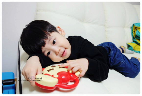 효과음도 흔들때마다 다른 소리가 나서 신기한지 계속 흔들어대는 진주군이지요~