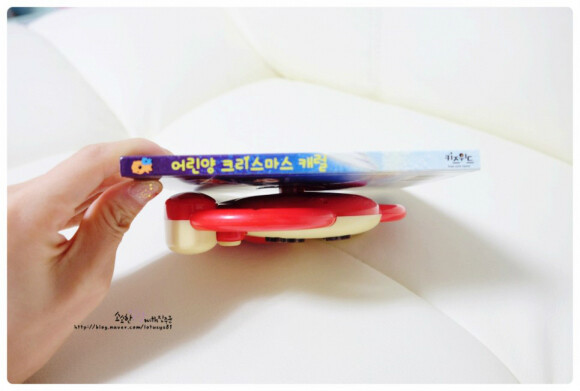 양 장난감 뒷편 홈을 책의 거치대에 살짝 돌려 끼우면 흔들리지않고 잘 고정되어 있는데