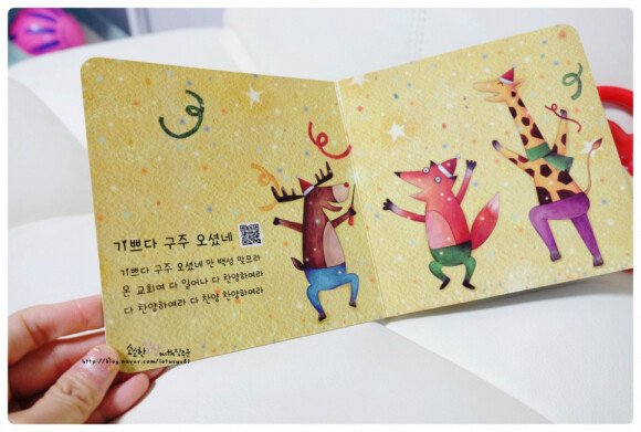 아이도 보기 편한 아담한 사이즈의 보드북으로 가사를 확인 할 수 있어요.