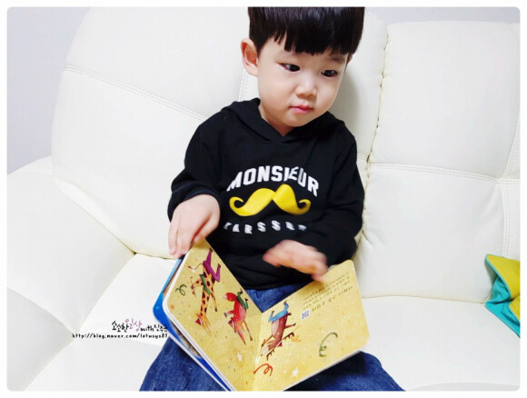 진주군도 보자마자 신기한지 요리조리 살피며 사용방법을 알아서 터득하는 3살 아가의 흔한 사운드북 탐색하기